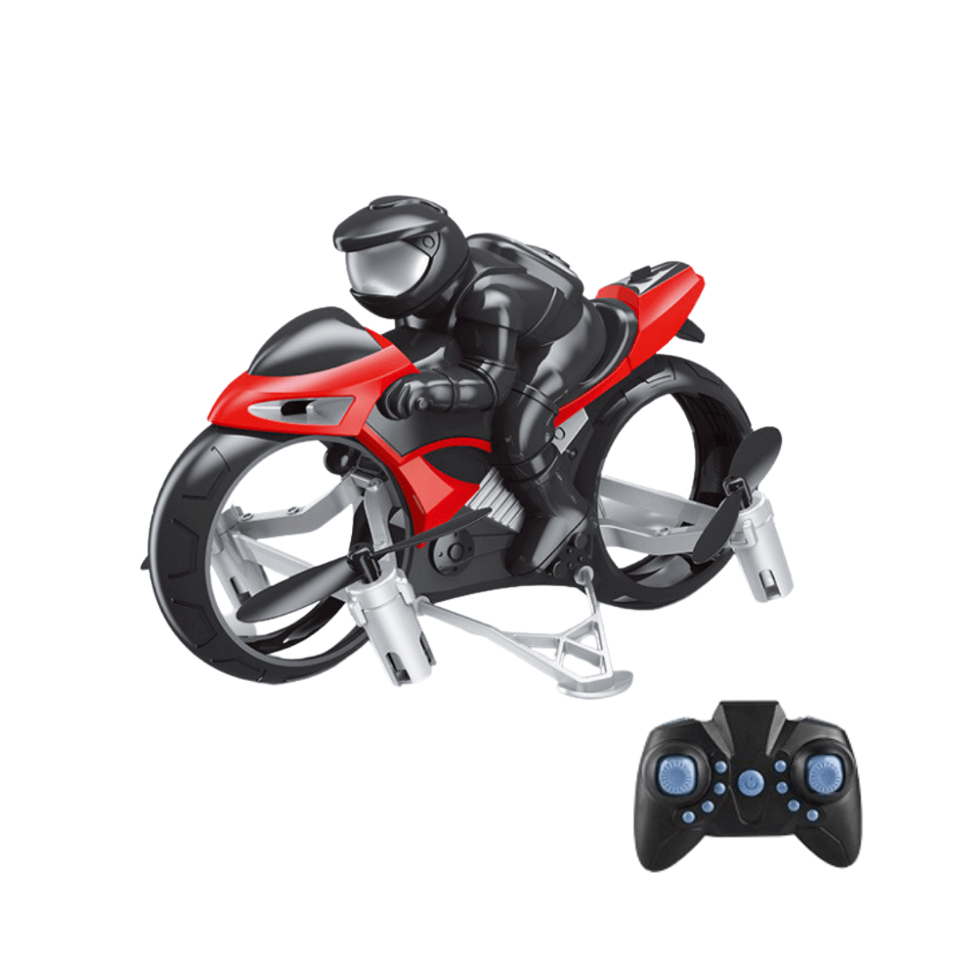 Yes! This RC bike is equipped with small rotors that allow it to perform aerial flips and short-distance hovering. It’s designed for both ground stunts and air tricks.
